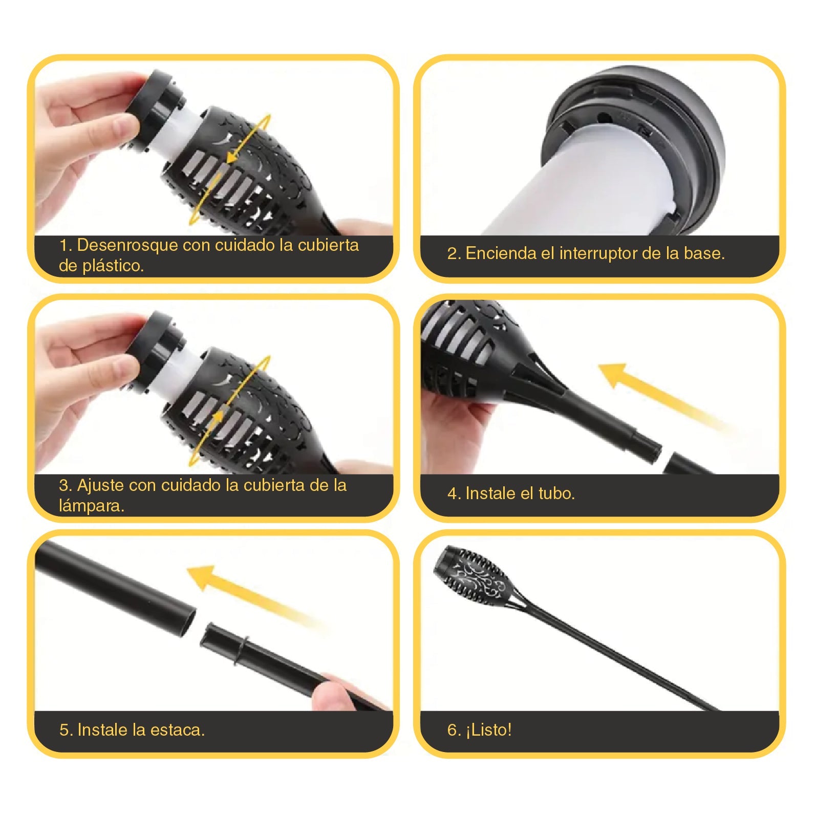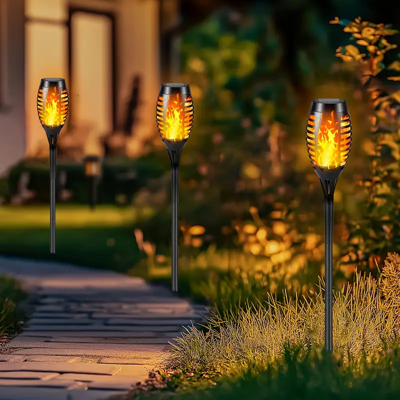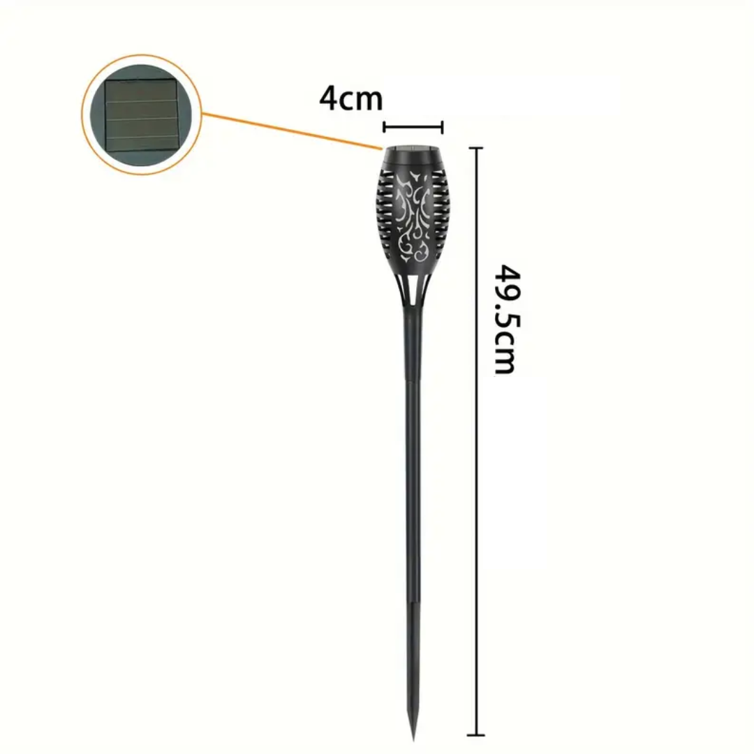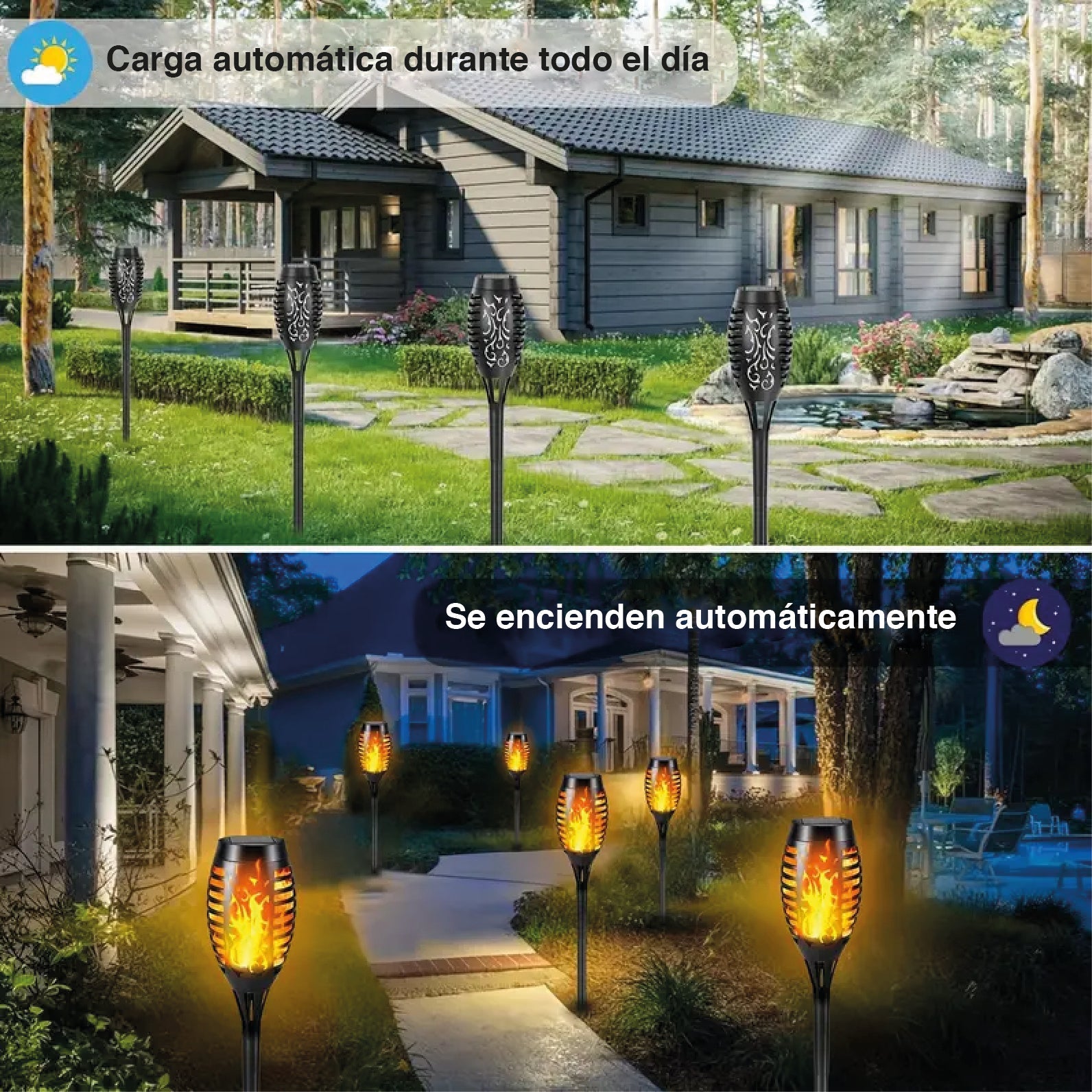 Con nuestras antorchas solares, dile adiós a los espacios oscuros en tu jardín. Estas luces crean un ambiente cálido y acogedor sin necesidad de electricidad, ofreciendo una solución efectiva y ecológica para iluminar tus noches.